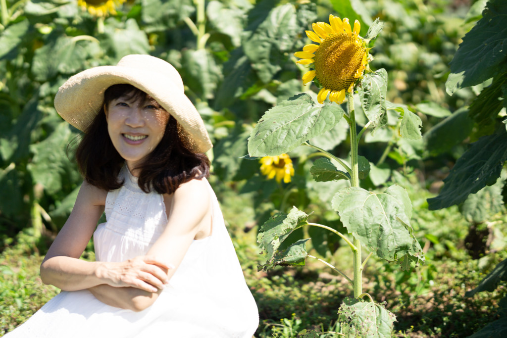 芝生の向こうには大きな池とひまわりが。9月だったので、ひまわりはほとんど終わりに近かったけど、7月~8月は満開で綺麗でしょうね。
