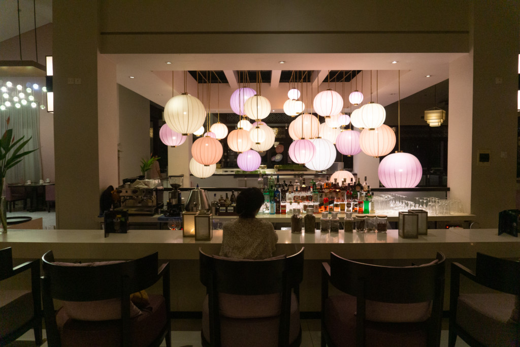 ロビーラウンジのすぐ隣にBar「TONIC」があります。フュージョンマイアダナンのテーマカラー、ピンクパープルに統一されたBar。