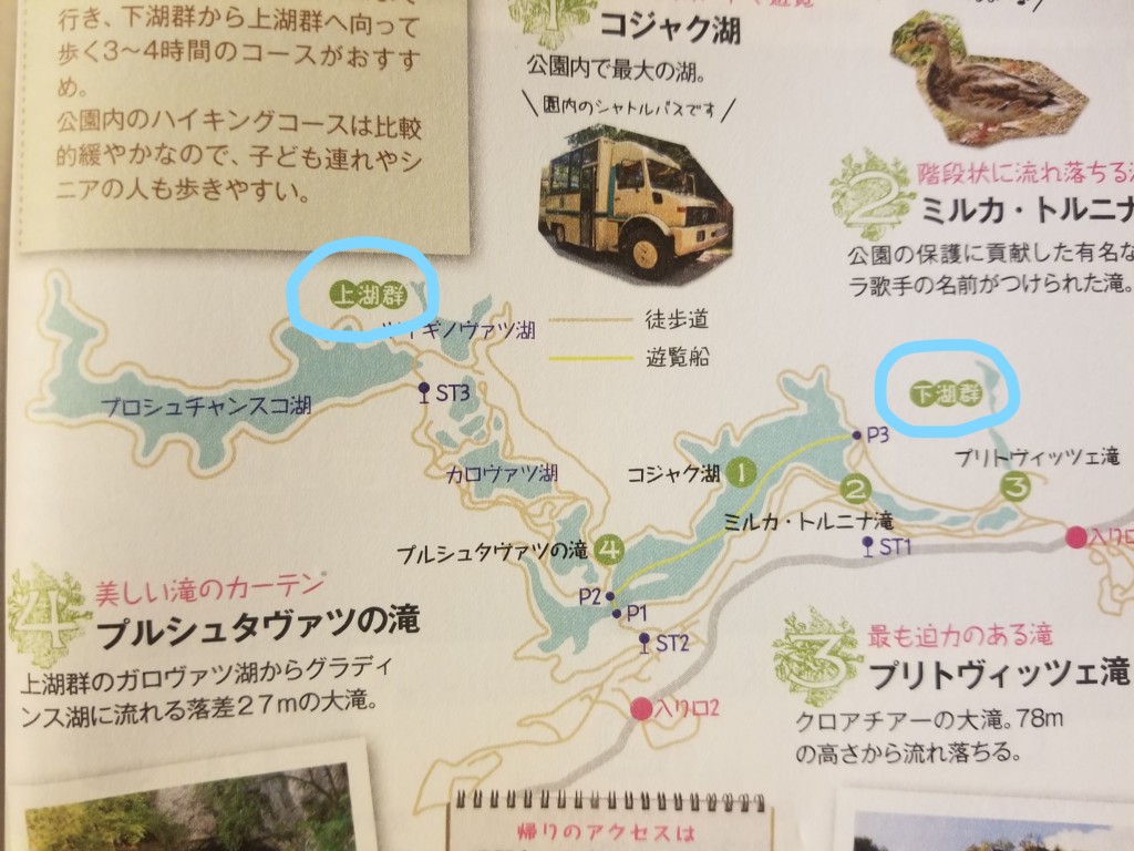 首都ザグレブからバスで2時間と比較的近いので、日帰りで行かれる方も多いかと思います。しかしプリトヴィッツェ湖群国立公園はと~っても広大なので、日帰りで全部回るのは時間的に厳しいです。コースは上湖群と下湖群に分かれているので、日帰りならどちらか片方のコースを歩くことになるでしょう。